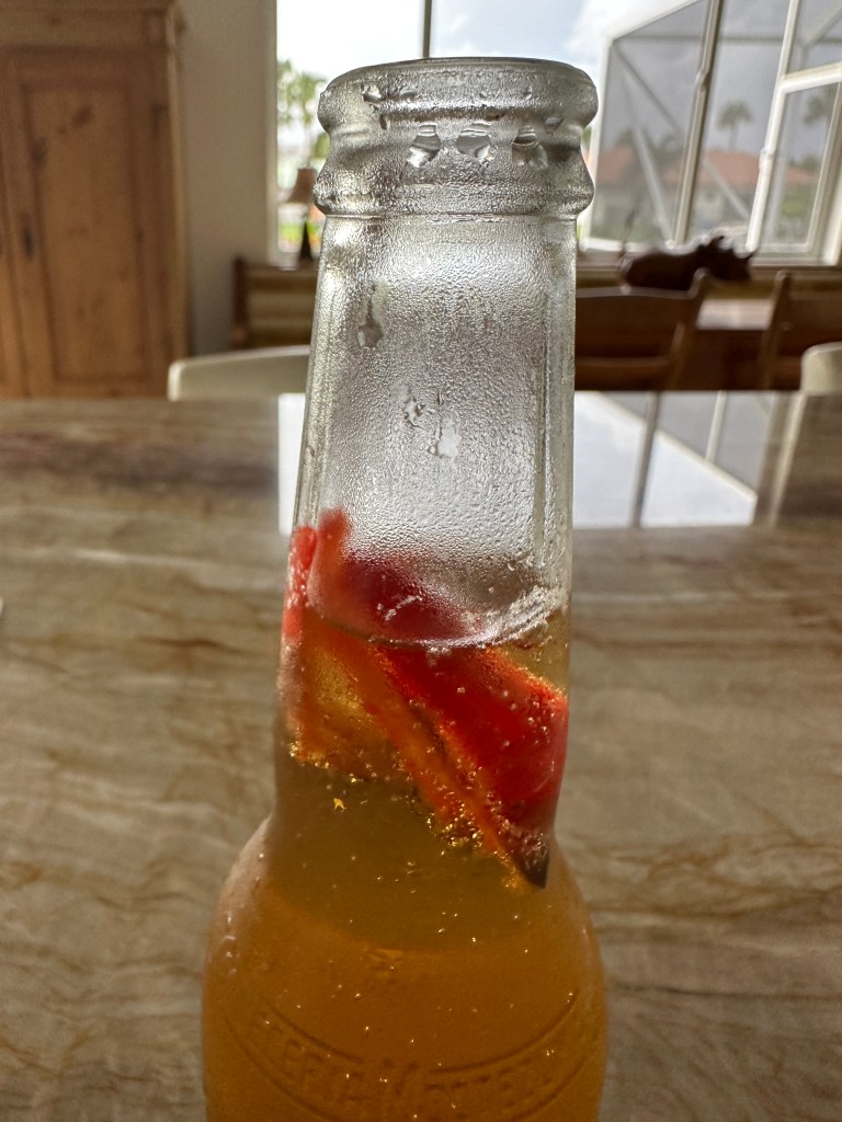 Slice peppers in thin strips, making sure to remove all seeds. Add no more than 3-4 slices to your Sol beer.